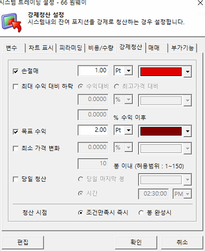 아래와 같이 수식안에서 손절 익절을 수식안에서 지정하시고