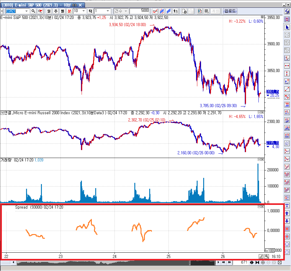 해외선물 Pair Trading 지표를 구현 하고자 합니다