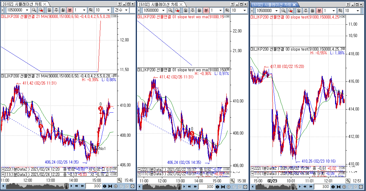 차트당 1개씩 진입/청산, 최대 동시 포지션은 3개진입이 되겠네요..