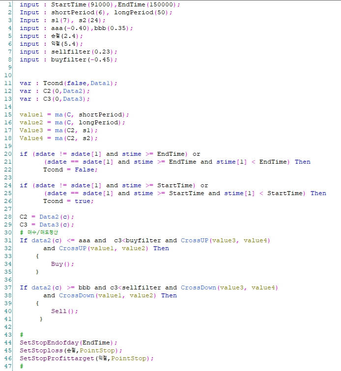 If data2(c) >= bbb and c3<sellfilter and CrossDown(value1, value2) Then