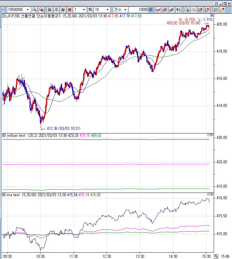 1분봉차트에 일봉의 5,20,60 일 이동평균선