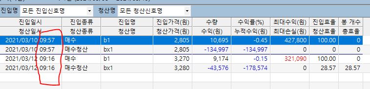 의뢰 했었는데 실제 시스템에 적용해서 보니. 매수 하자 마자 바로 청산되는