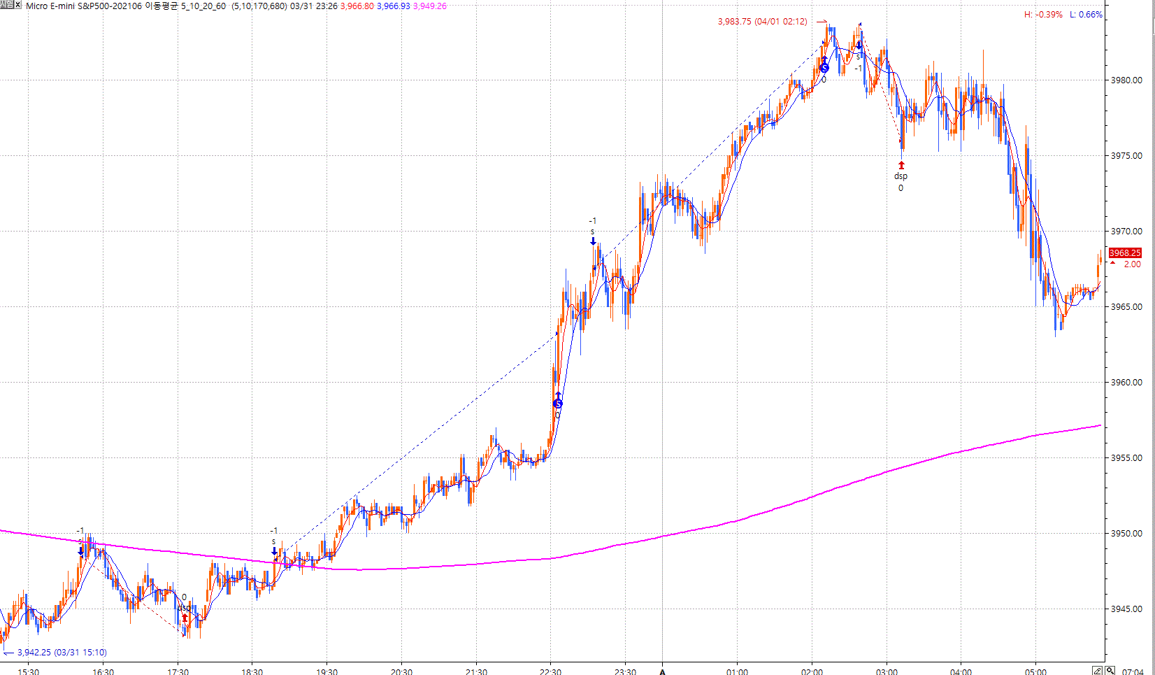 이동평균선 680선 아래에서 buy신호후 10틱이상 손실인경우 Sell신호로 변경되는 주문의 수식어 부탁드립니다