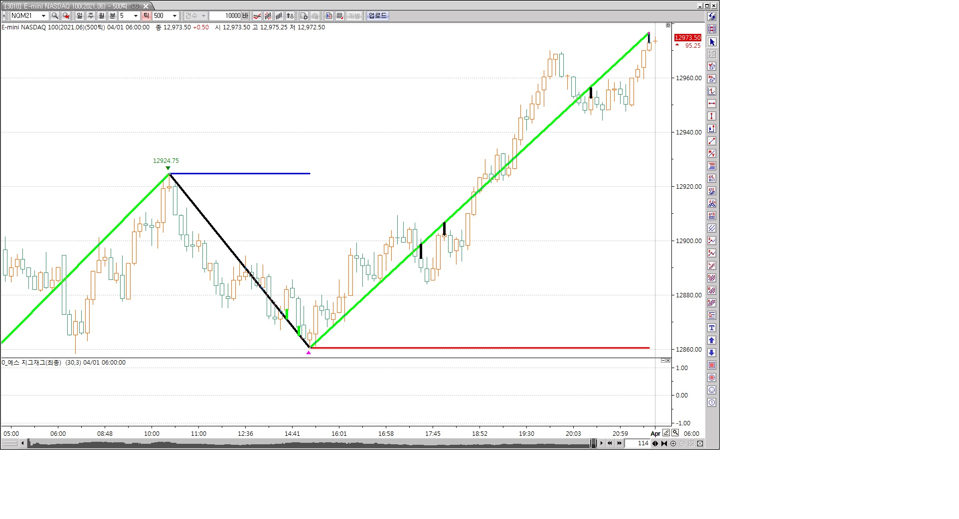 현재 수식에 최근 발생한 고점/저점에서 종가를 연결하는 선이 있습니다.