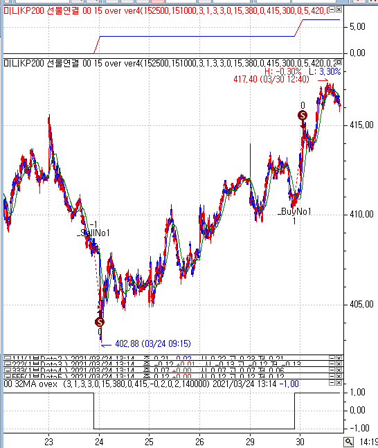 전략1이 전일오버했으면, 전략2는 당일하루 매매금지 입니다.