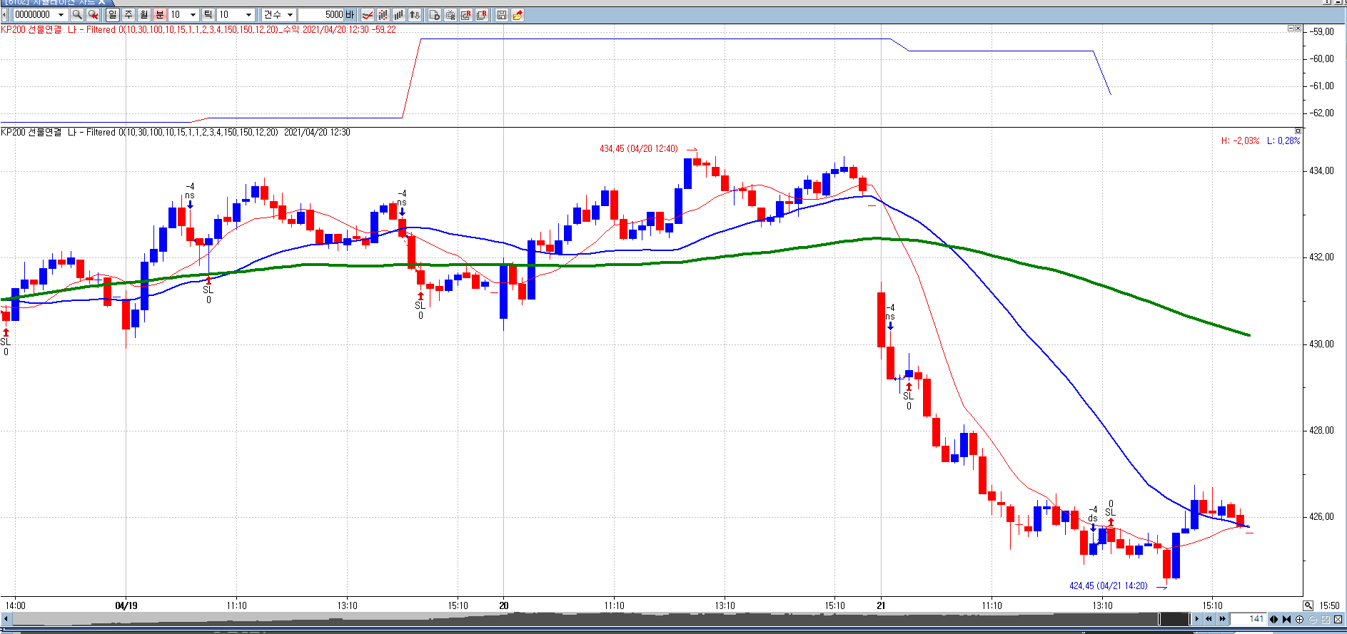 Input: n1(4), n2(5), m1(1), m2(1), m3(2), m4(3), m5(4), 익절k(5), 손절k(5), k유리(3),pause(5);