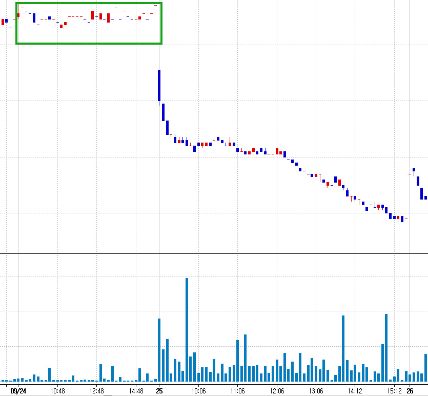 1. 전일 분봉 중에서 시가와 종가가 같은 분봉을 제외하고,
