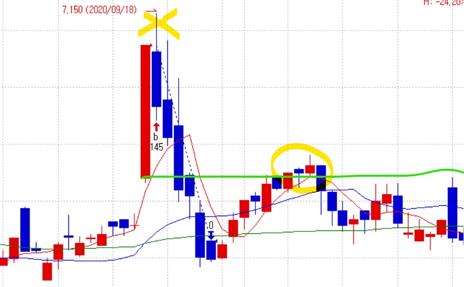 첨부 그림을 보시면 장대양봉 자체가 기준가격 충족으로 다음날 고가에 매수되는 문제가 있습니다. 이 부분 해결이 우선이고,