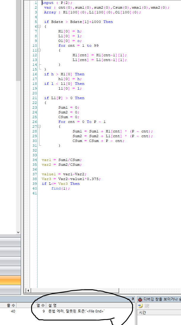청부한 파일과 같이 수식을 검색, 또는 종목검색 으로 작성해서