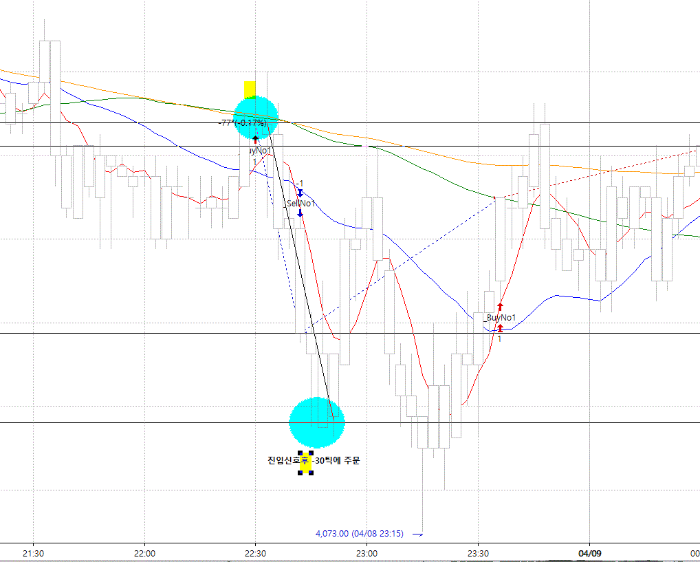 진입신호후 buy , sell 둘 다 -30틱에 주문이 되는 수식어를 포함 하고자 합니다.