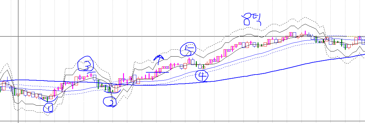 4번- 5번 발생후 5평선을 종가가 2번이상 꺠고 / (20평선-2틱)을 깨지 않는 조정발생