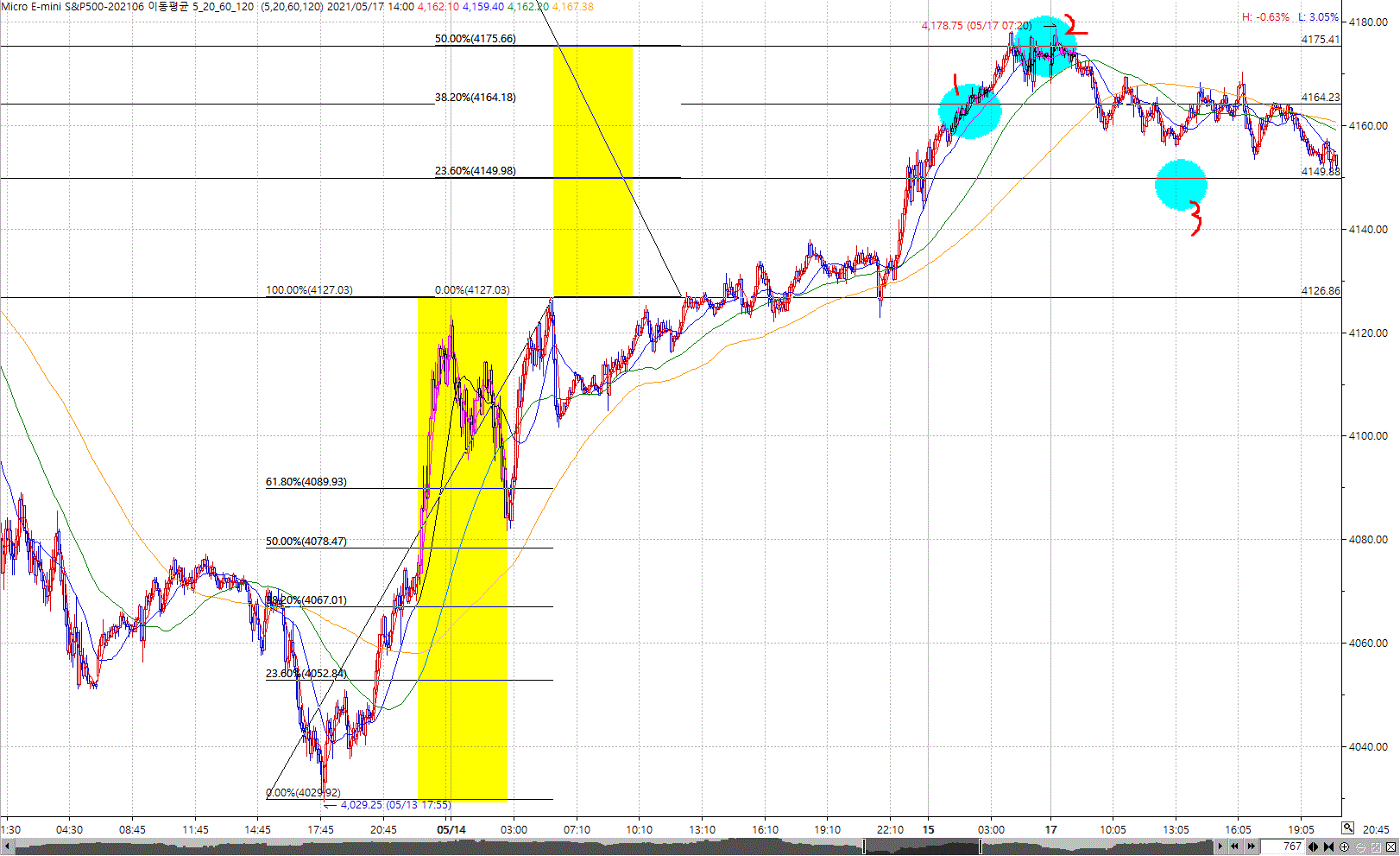 전일대비 150% , 138% sell 진입후 123% 청산하는 수식어 입니다