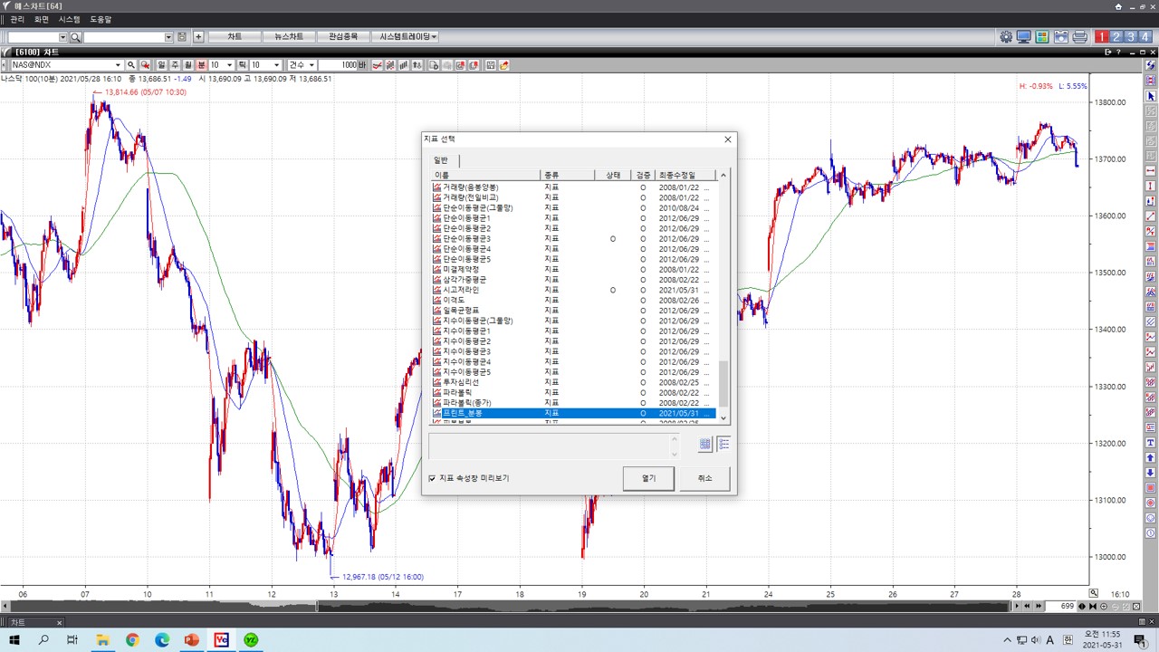 "프린트_분봉" 지표로 작성하여