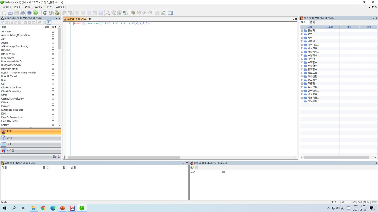 전략실행차트에서만 동작하는데 예스차트에는 해당 차트가 없습니다.