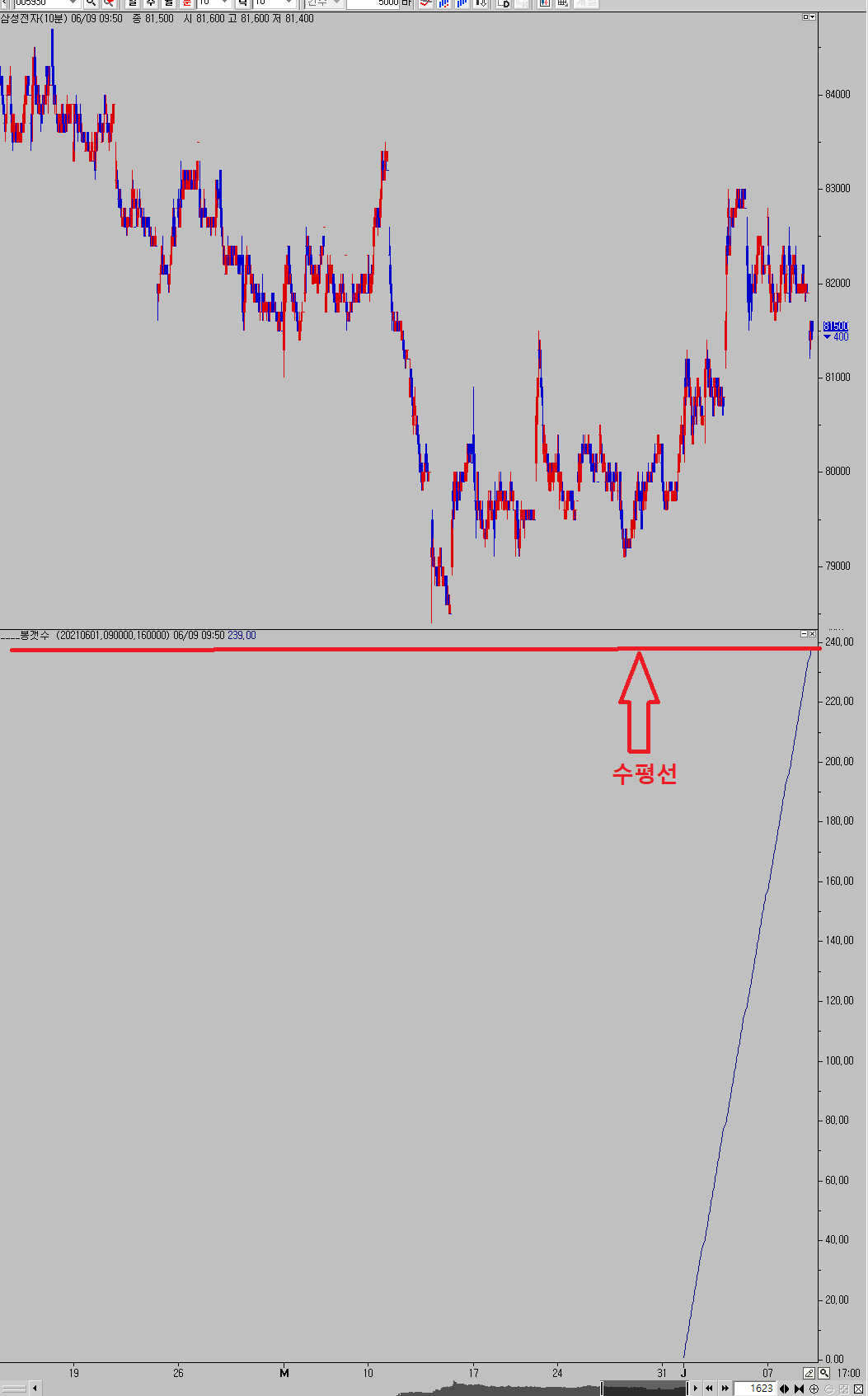 안된다면 그림과 같이 수평선으로 나타 날수 있겠는지요?