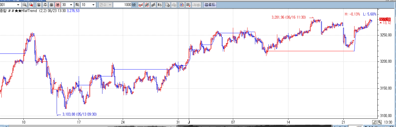 (검정바탕그림이 halftrend 지표)