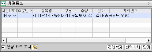 금일 신호 발생후에 주문이 이뤄지지 않고 아래와같은 오류가 나타나 문의드립니다.