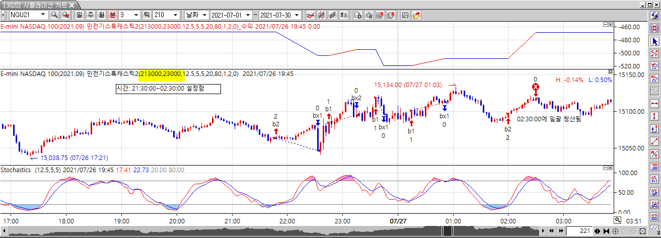 시작시간과 종료시간에만 거래하되 종료시간에 잔고 있는것 전량 청산이 되게 작성되었습니다.