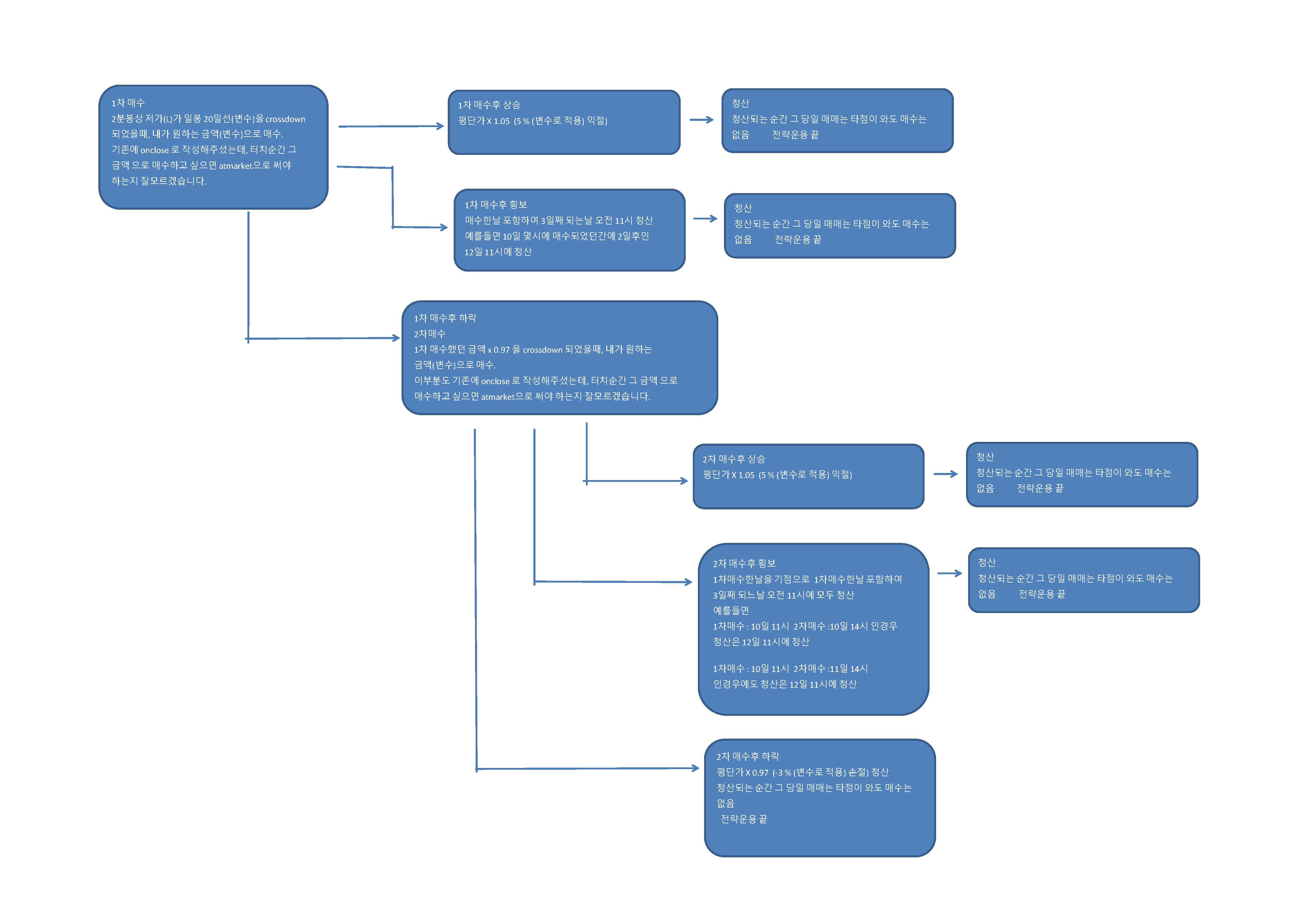 Buy("b2",AtLimit,LatestEntryPrice(0)*(1+추가진입/100),Floor(금액2/min(NextBarOpen,LatestEntryPrice(0)*(1+추가진입/100))));