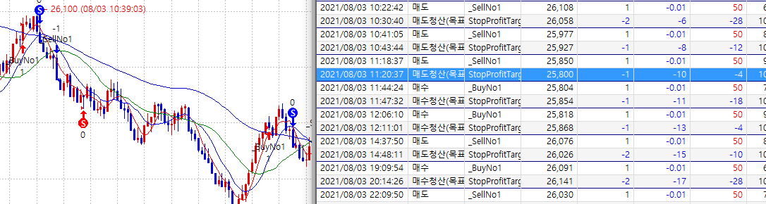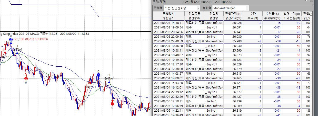 > 목표청산수익을 이용하여 차트상에는 목표수익에 도달하여 청산된것으로 나오는데 성능보고서상에는 다 손실로 기록되어있어 문의드립니다.