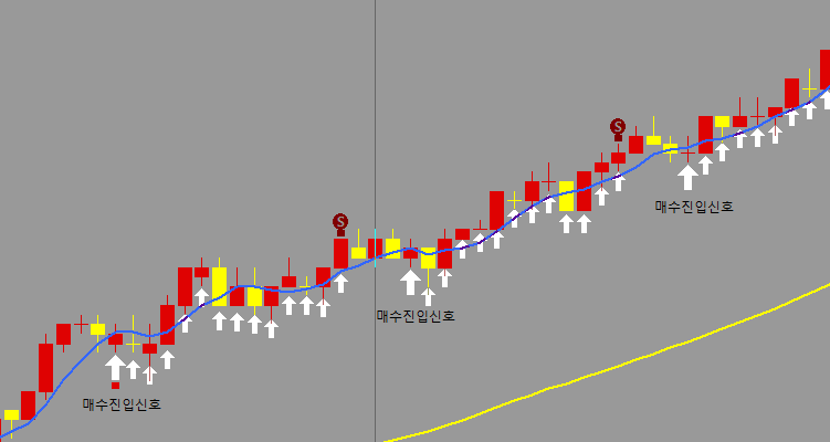 매수조건 5일선이 60일선 상승돌파시 5일선 -2틱에서 매수진입