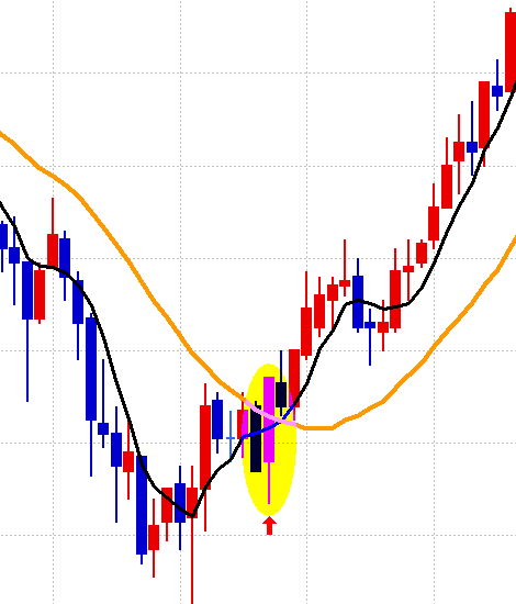 매수일경우 시가는 5,20일선 아래서 시작하고, 매도일경우 5,20일선 위에서 시작 되어