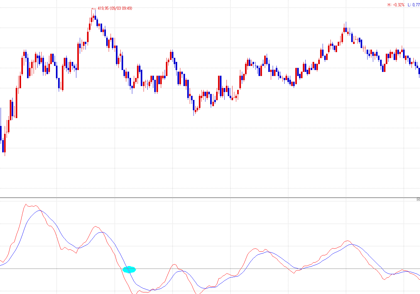 MACD 12 26 9 시그널선이 기준선0선을 위에서 아래로 하향 돌파 시 매수