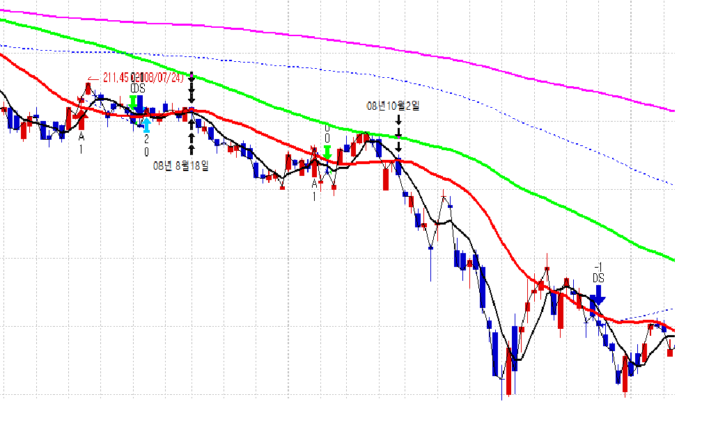 2008년8월18일은 ((Crossdown(c,Var2)) OR (Open <= Var2)) 조건에 충족되지 않습니다.