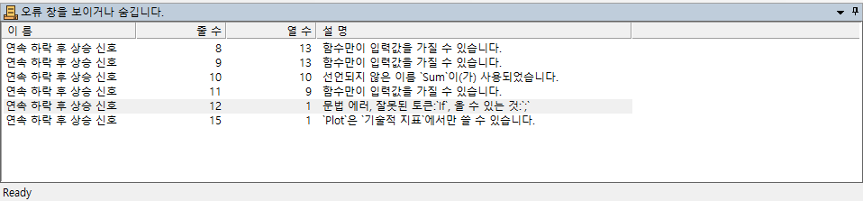 > 제목 : 연속 하락후 상승 신호를 종목 검색식 오류 보완 부탁 드립니다