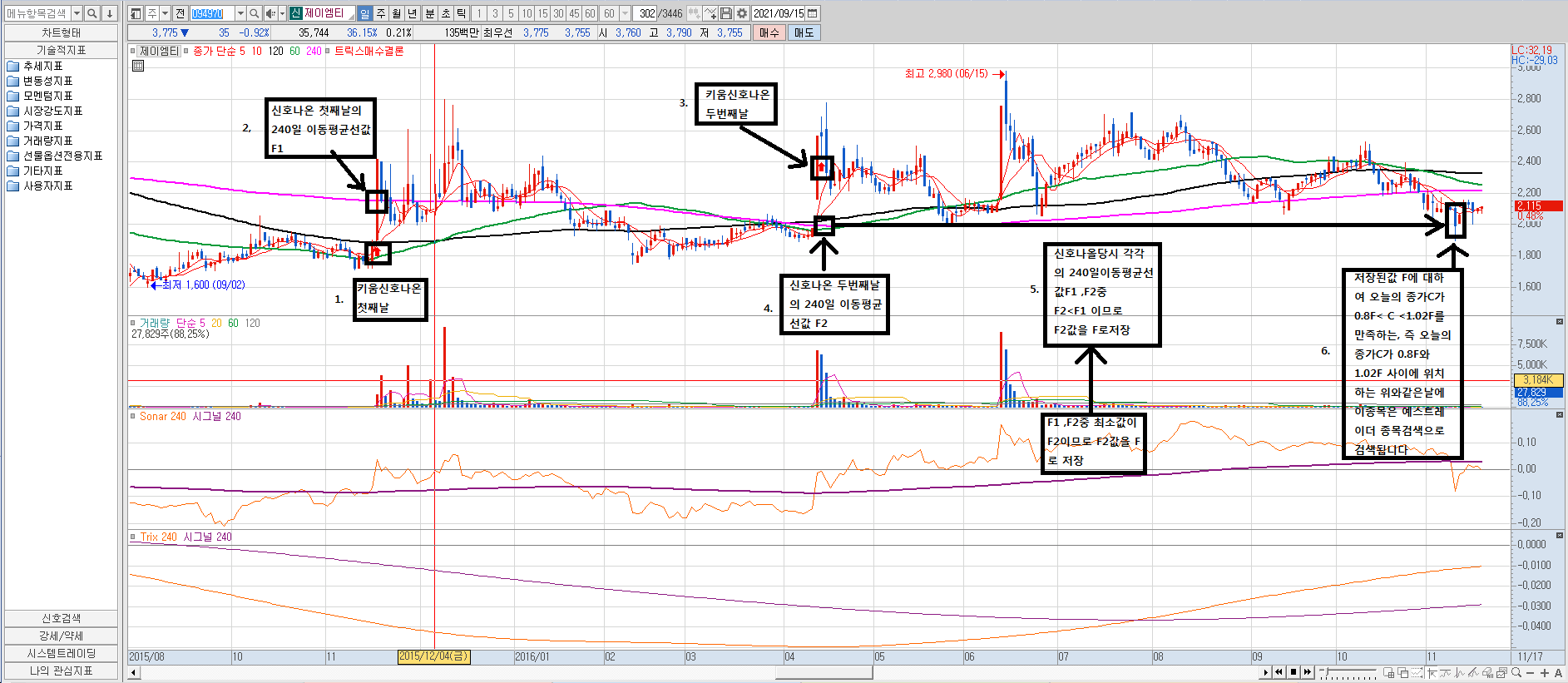 참고로 위 그림에서 분홍색 굵은선이 240 이동평균선 입니다.