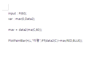 기본차트 5분봉, 참조데이타(data2)는 60분봉으로 셋팅하고 아래식 적용하시면 됩니다.
