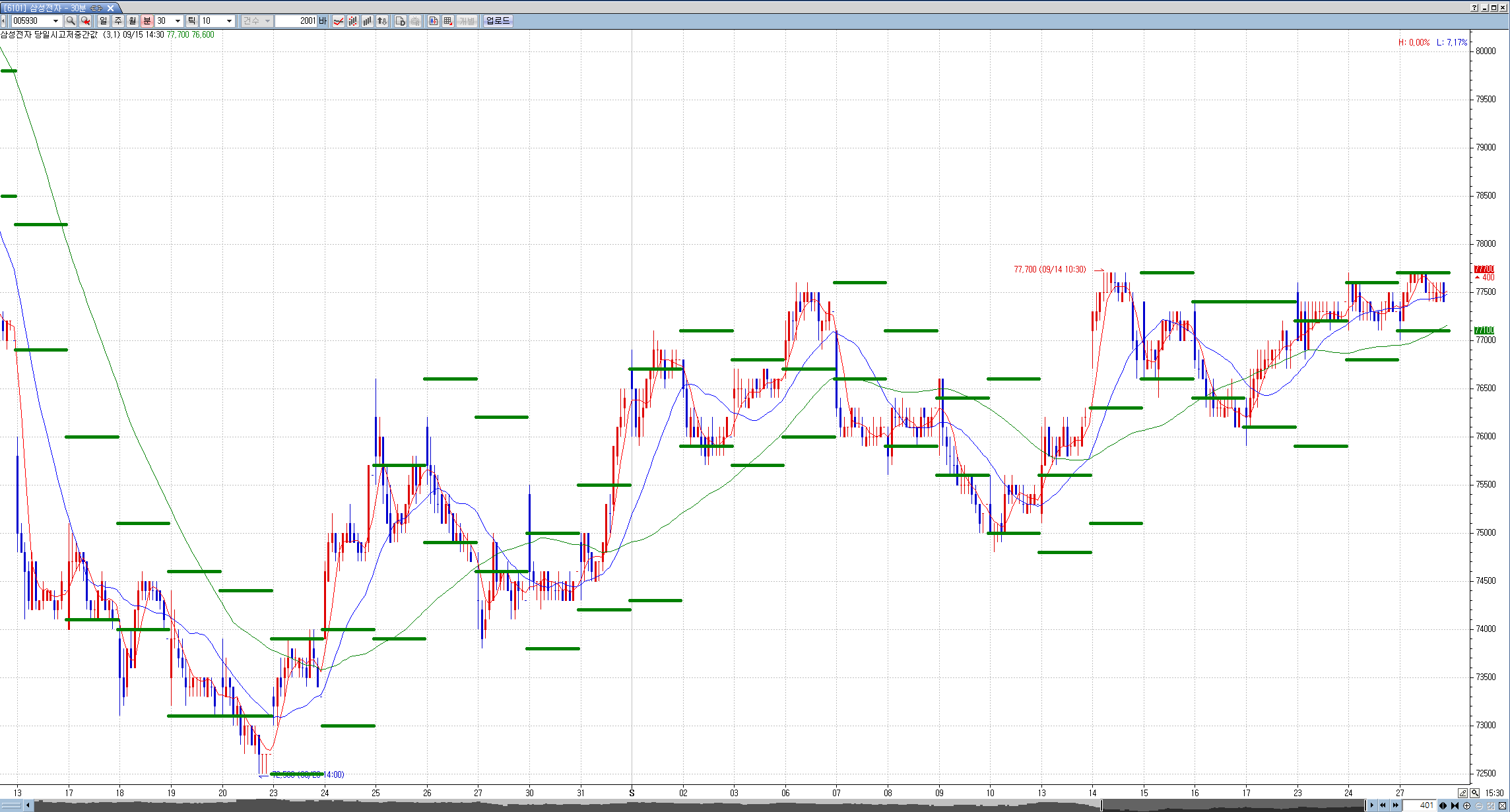 > 분봉 챠트에서 전일 고저선을 10일(변경가능) 치만 나타나게 할수있는지..
