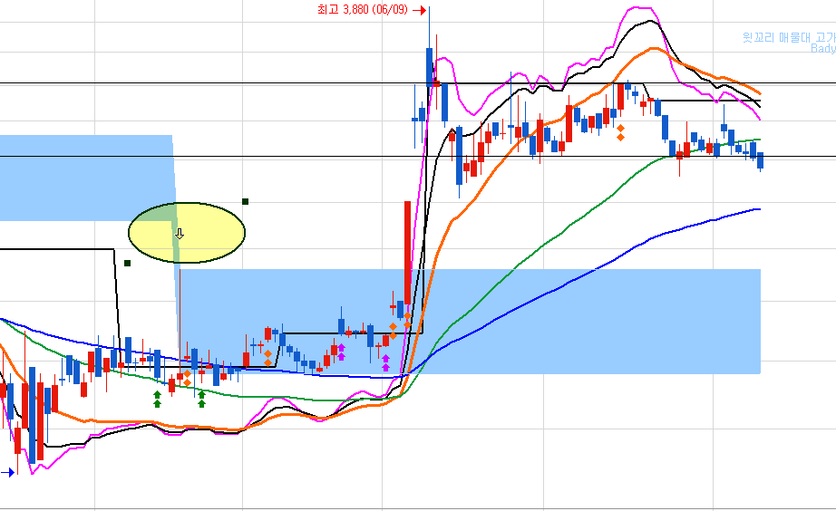 if A/B>배수 &&H/C[1]>(1+상승률/100) Then