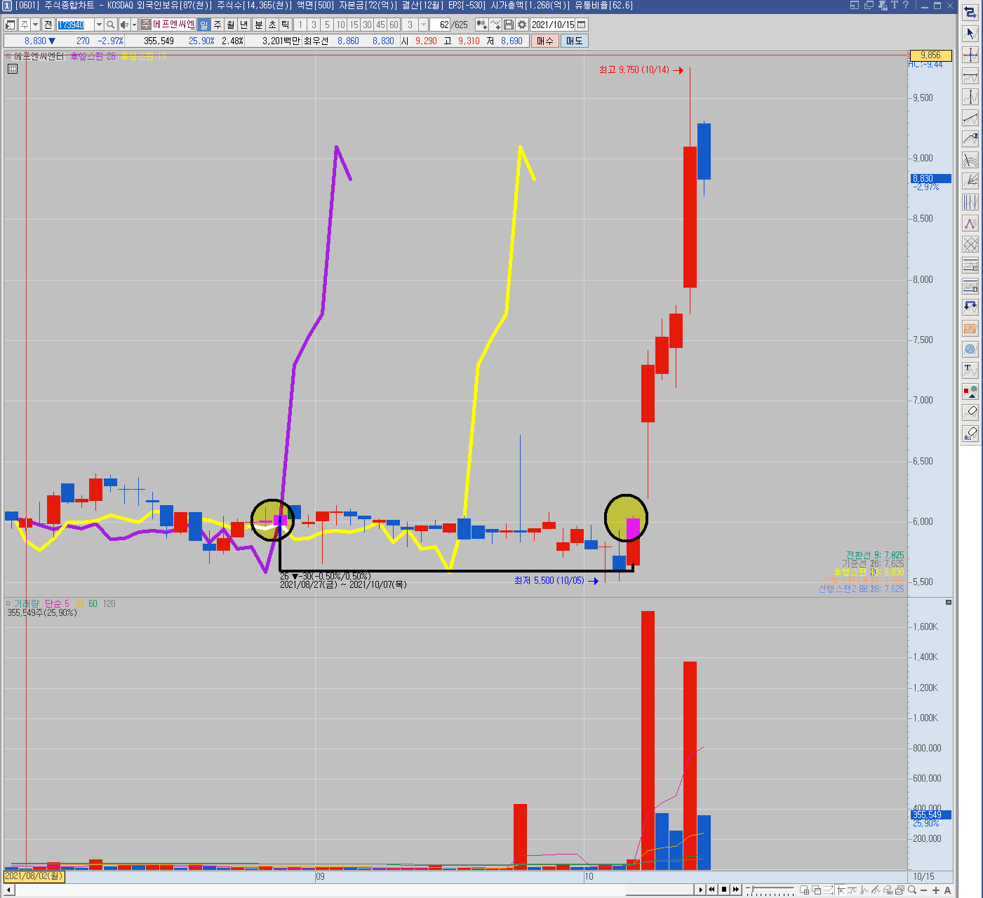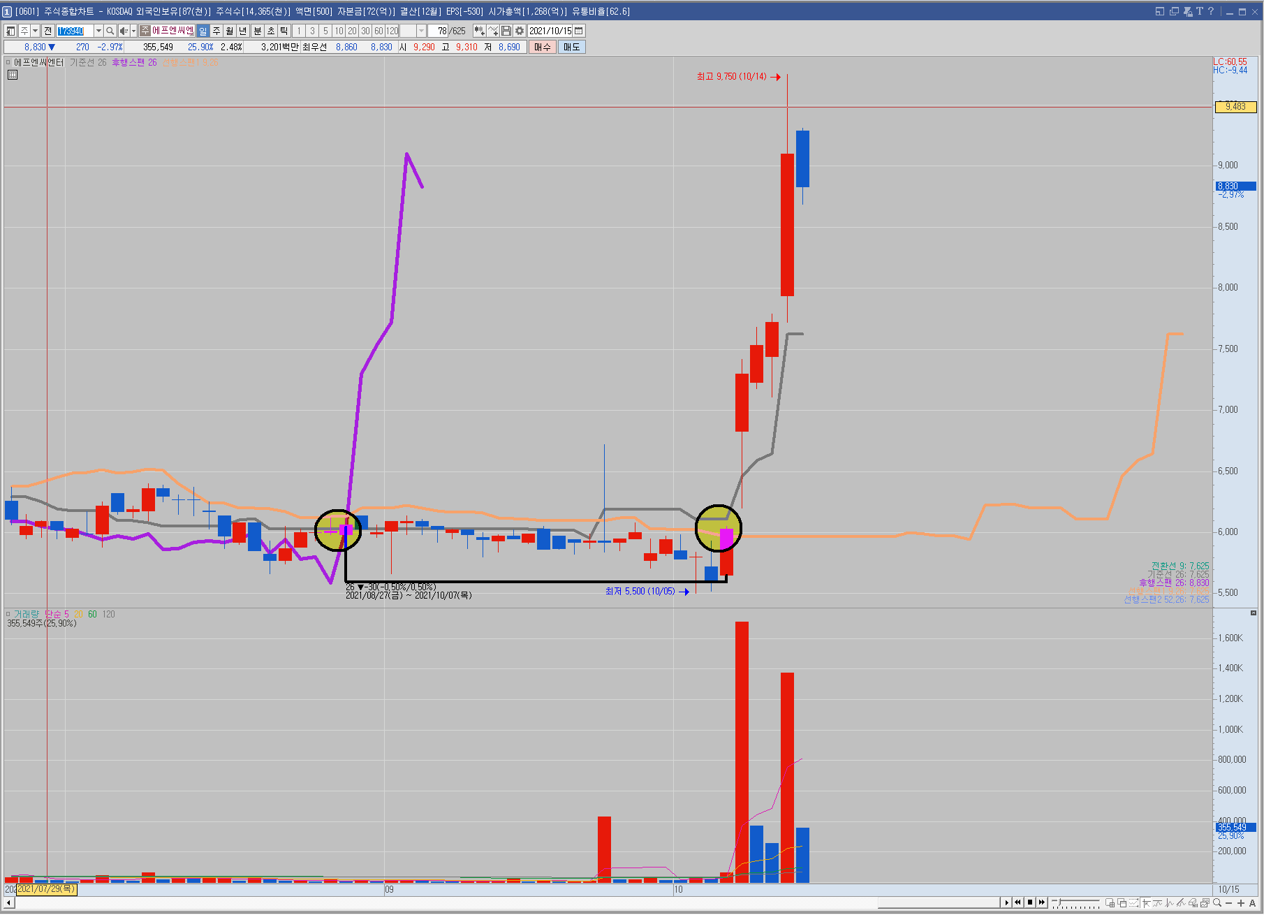 2. 정일목 후행스팬 과 기준선 골든크로스 종목 검색