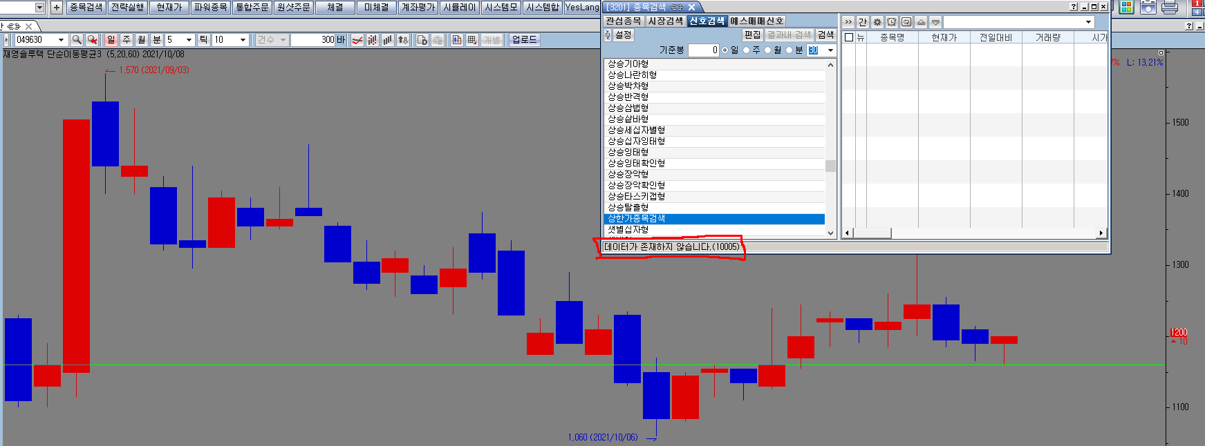 다름이 아니라 답변해주시는대로 해보았으나, 검색되어야 될 종목이 검색이 되질 않아
