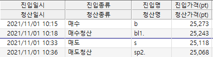 input : 익절1(30),손절1(30),청산구분시간(103000),익절2(50),손절2(30),익절연속횟수(3),손절연속횟수(2);