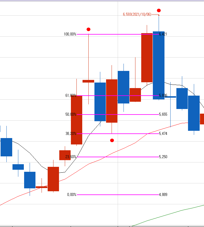 일봉 캔들 20개의 매수 38.20 % 청산 123.60 % 의 수식어와