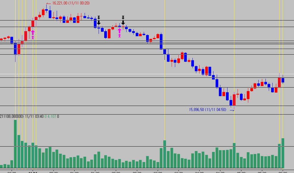 > 거래량이 10,000 이상일때(분봉기준) 그림과같이 거래량에 해당하는 각각의 봉 시가에 수평으로 라인이 표현되게 수식 작성될수있나요?