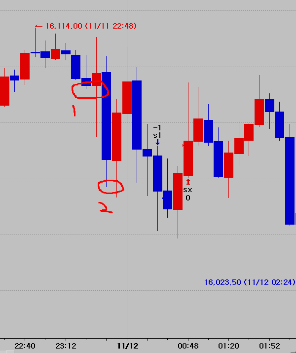 양봉이더라도 즉시 매수이니 이전 음봉캔들이 최저가이니 그 저가를 깨는 즉시 매도 들어가는 맞는데 진입이 없었습니다.