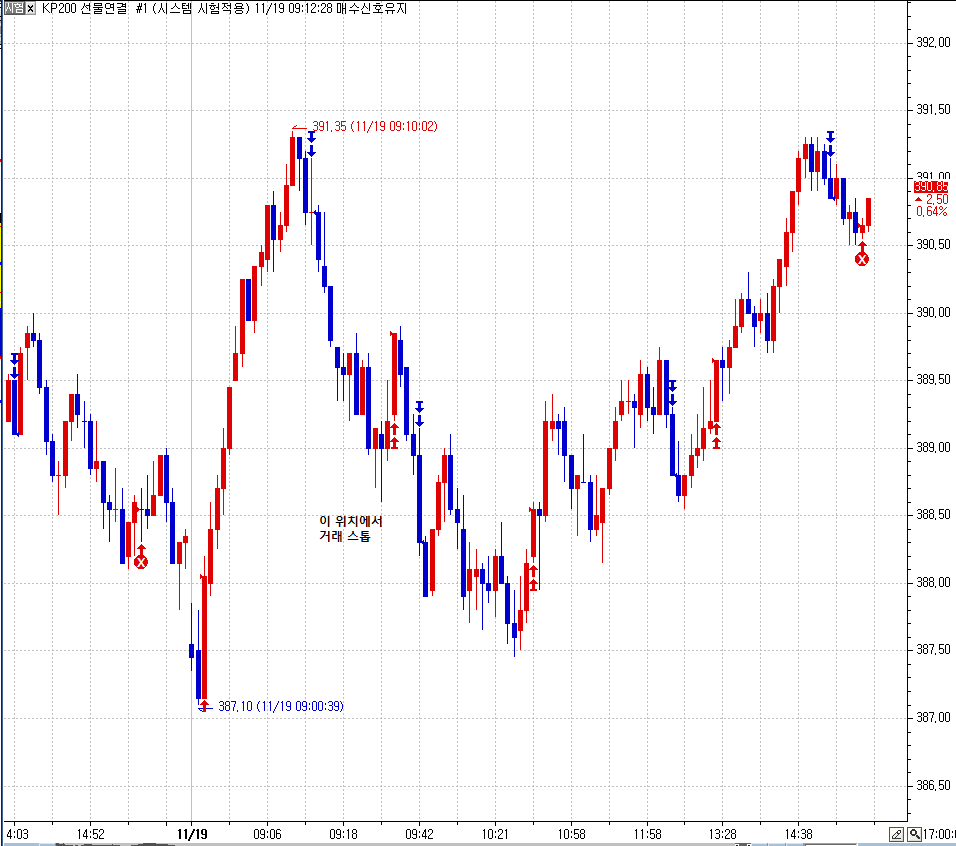 종가 파라볼릭 양,음 전환에 따라 매수,매도,매수,매도 4번 거래로 당일 거래 종료.