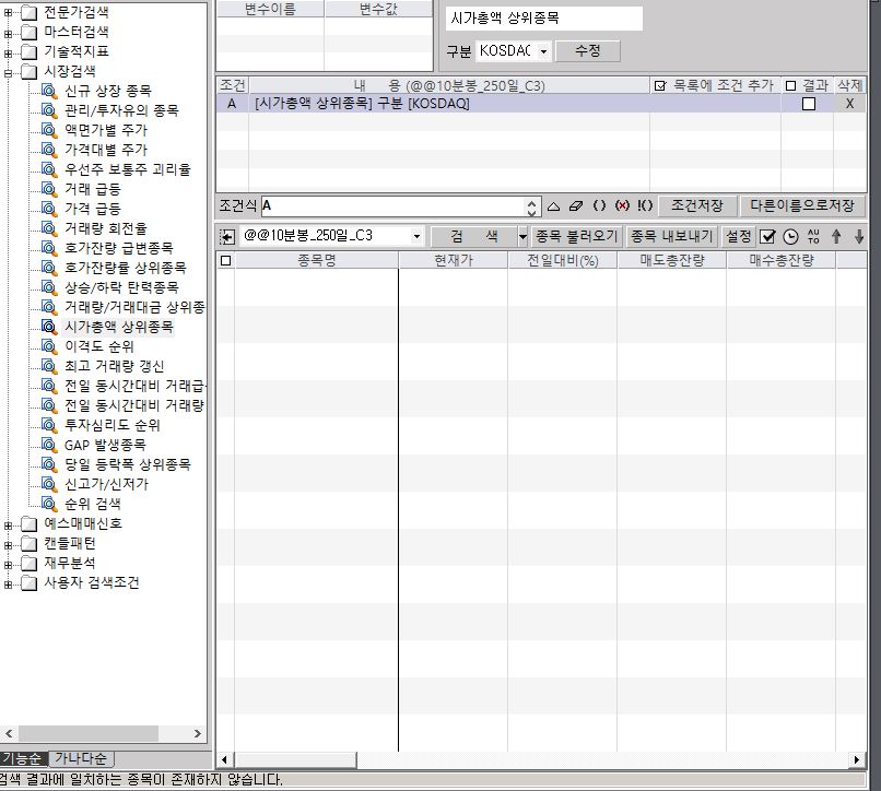 검색식으로 종목을 검색 시 제목과 같은 문구가 하단에 나옵니다.