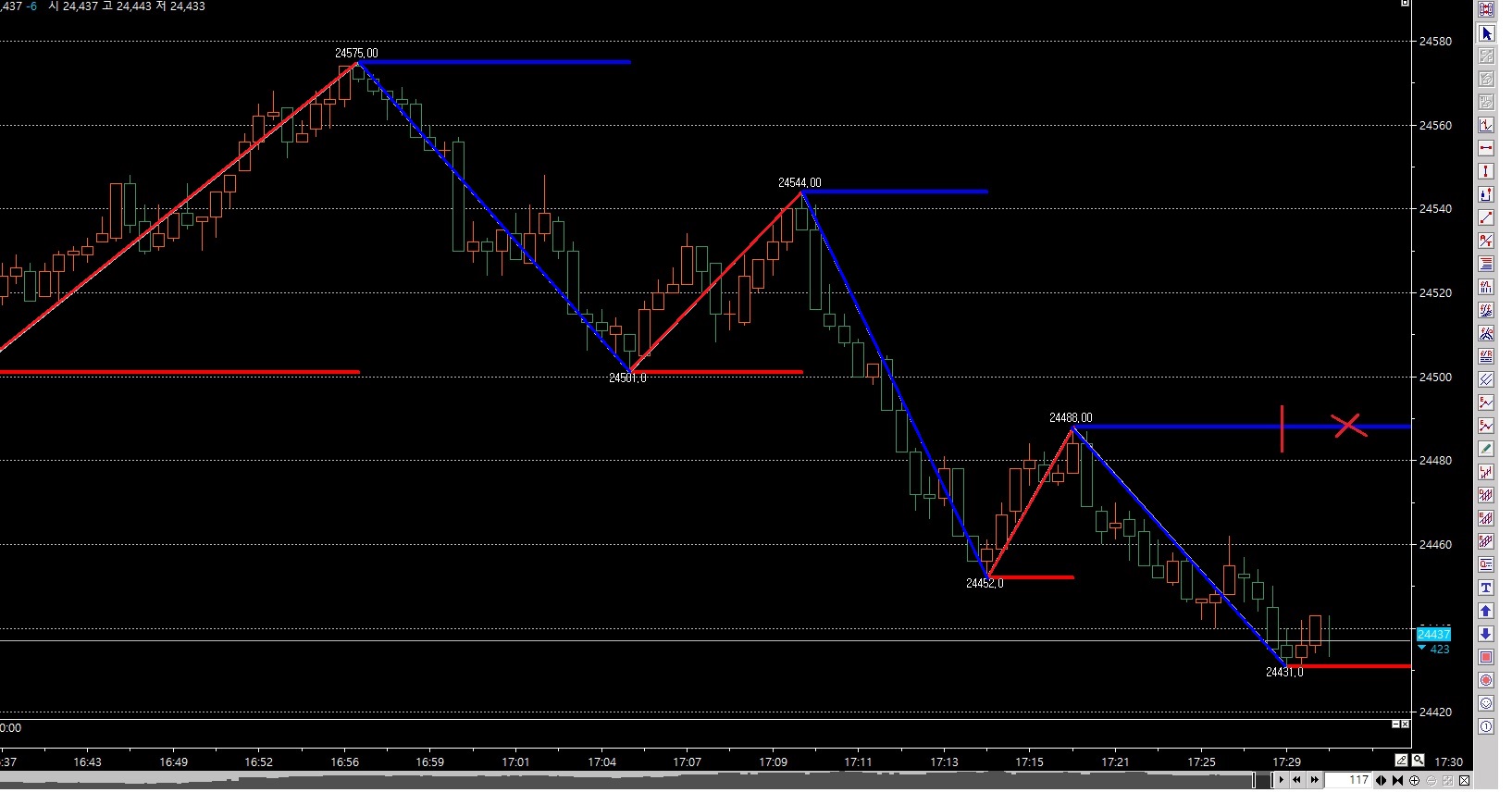 TL2 = TL_New(sDate[sBar],sTime[sBar],저점[1,1],sDate[eBar],sTime[eBar],저점[1,1]);