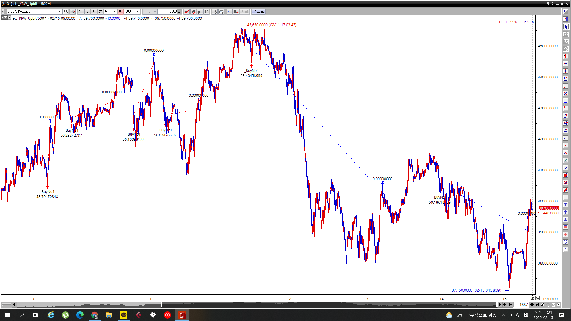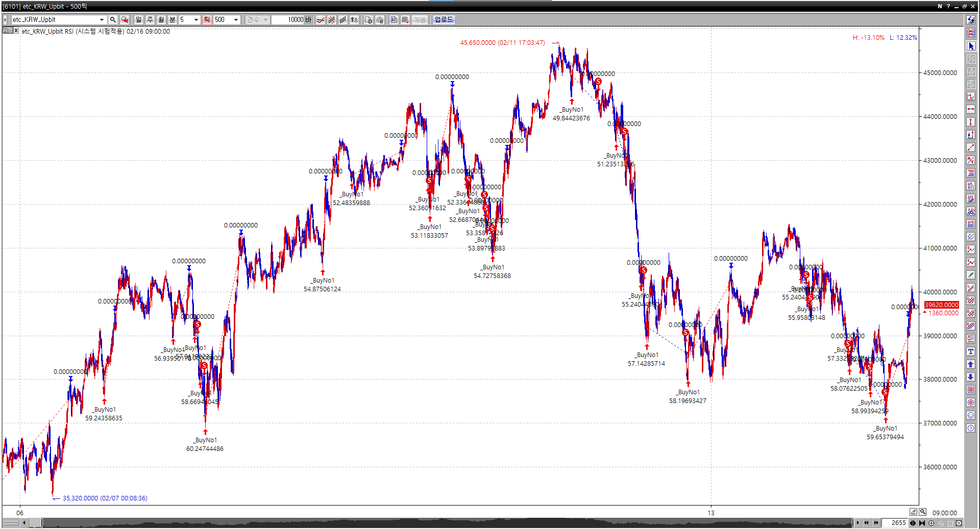 사진2 손절매 적용 - 손실을 줄일순있지만 하락세에서 계속 매매가 이뤄져서 효율적이지 않음