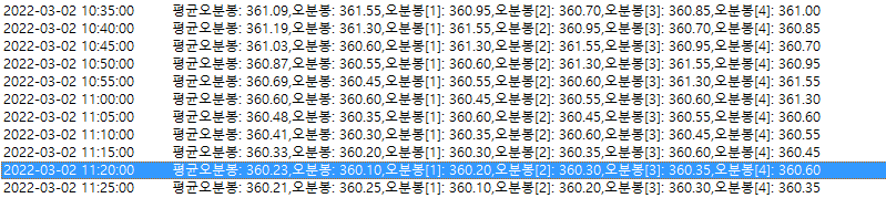 오분배열[0]의 현재봉값~오분배열[0]의 4봉전값을 모아 평균하게 됩니다.