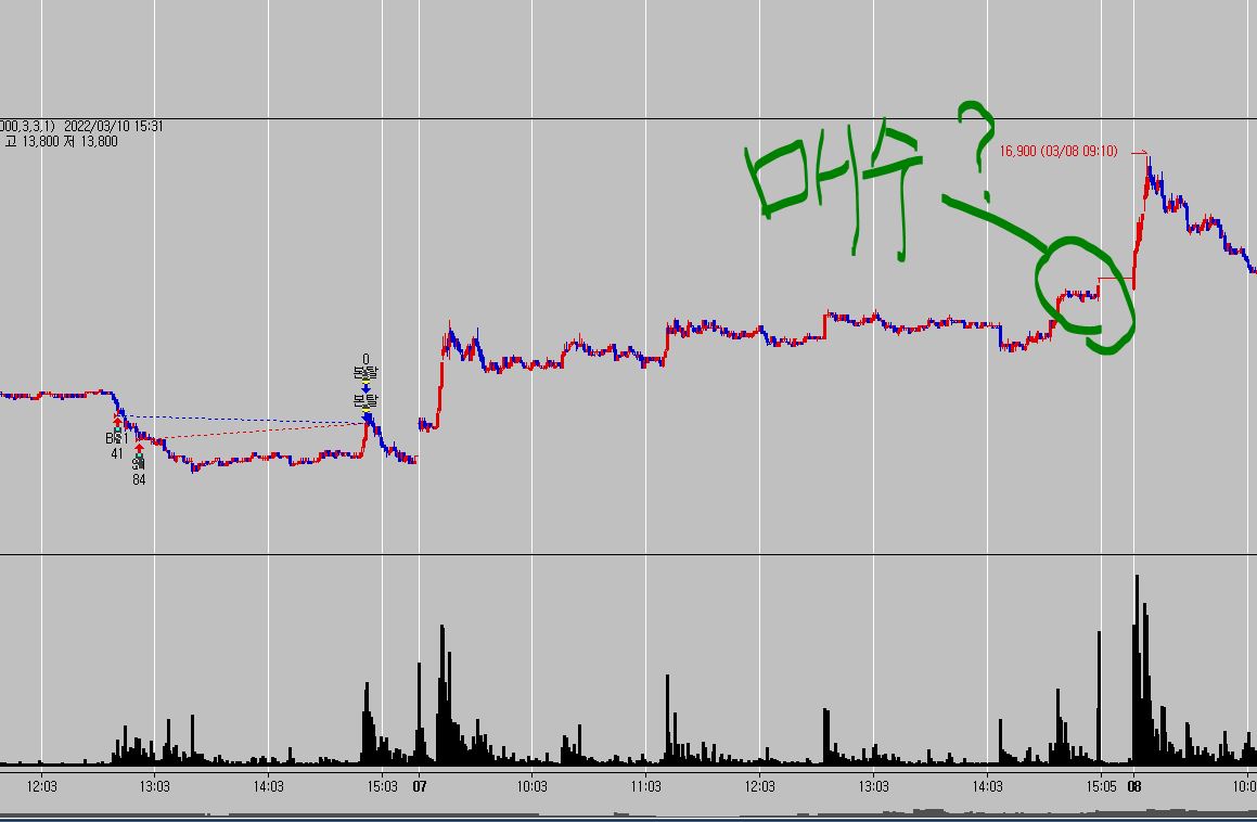 매수라고 동그라미 쳐진 부분에서 매수가 진행이 되어야 하는데