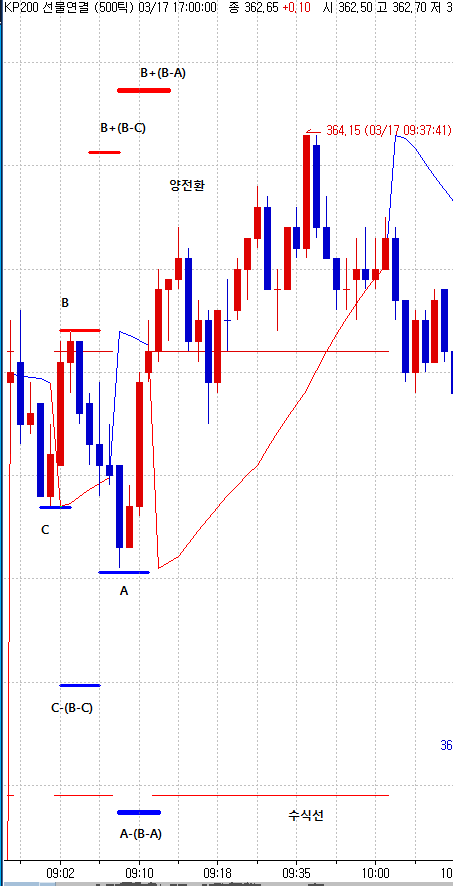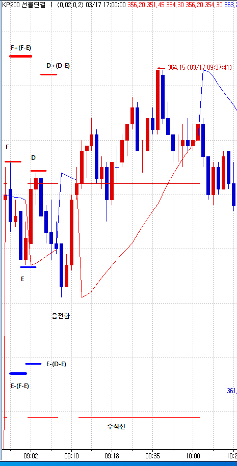 전일과 전전일의 양전환, 음전환 구간의 최고가와 최저가를