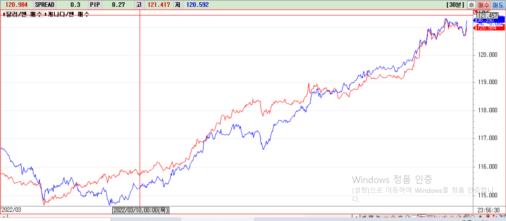 첨부파일처럼 "a"종목과 "b"종목을 한 화면에 동시에 띄웠을때