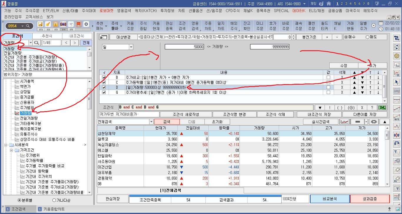 1 거래량조건만 작성하면 아래와 같습니다.