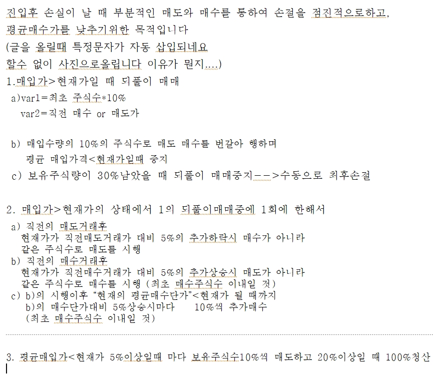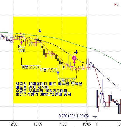 최초의 매수주식수 내에서 사고팔고를 되풀이하면서 평균매입단가를 낮추고