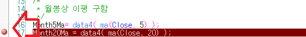 위와 같이 변수가 선언되면 해당 변수는 기본차트 주기로 값을 저장하게 됩니다.
